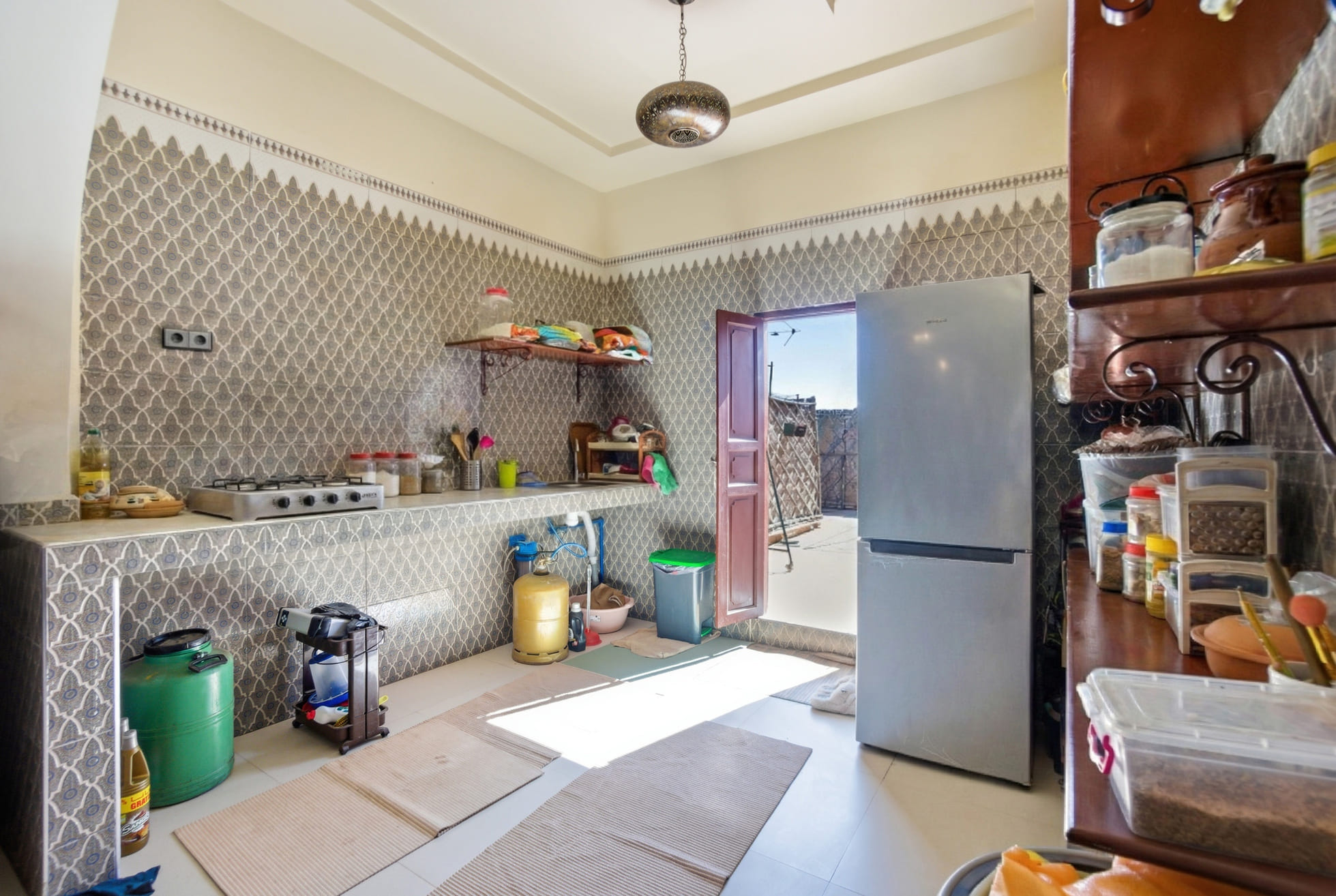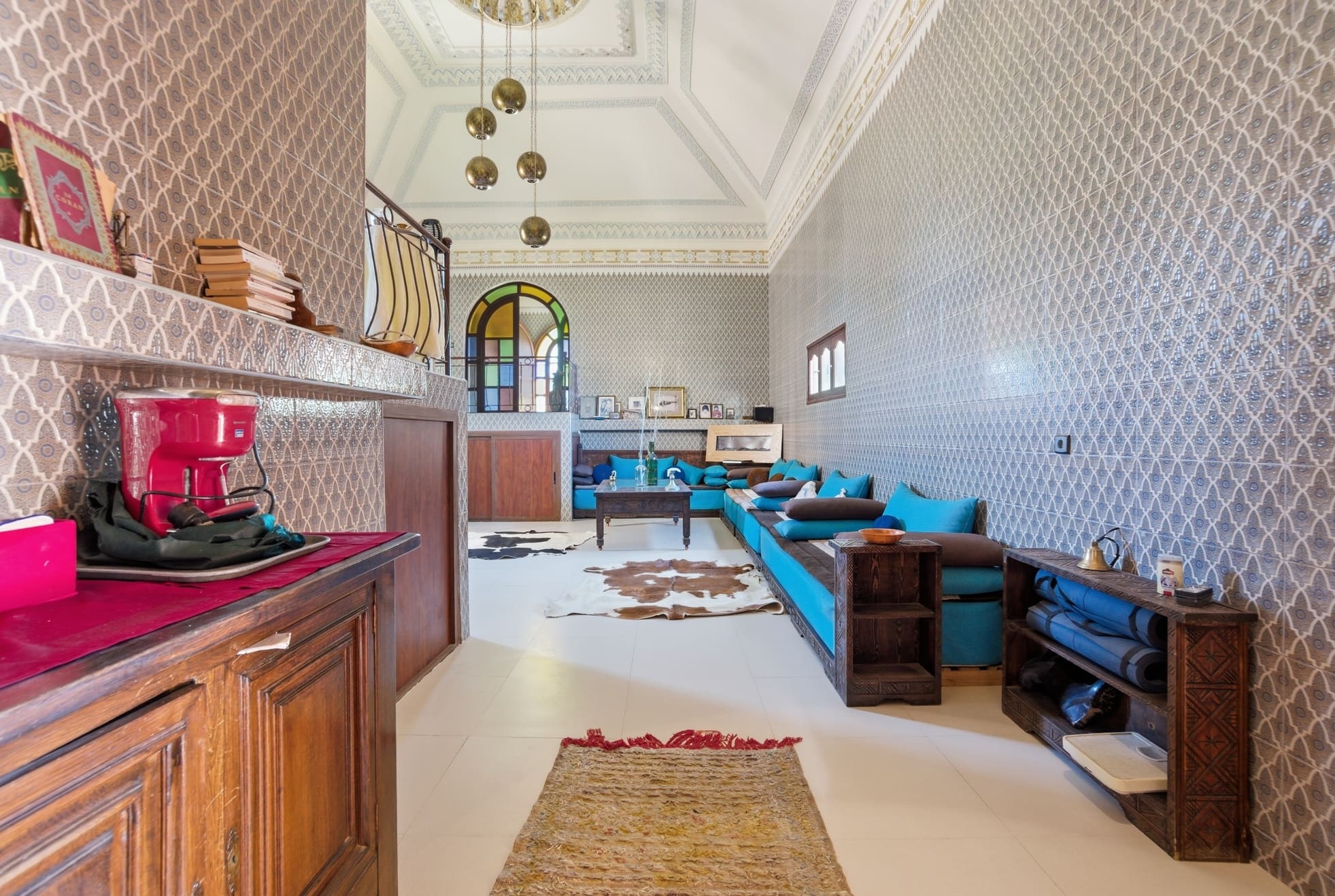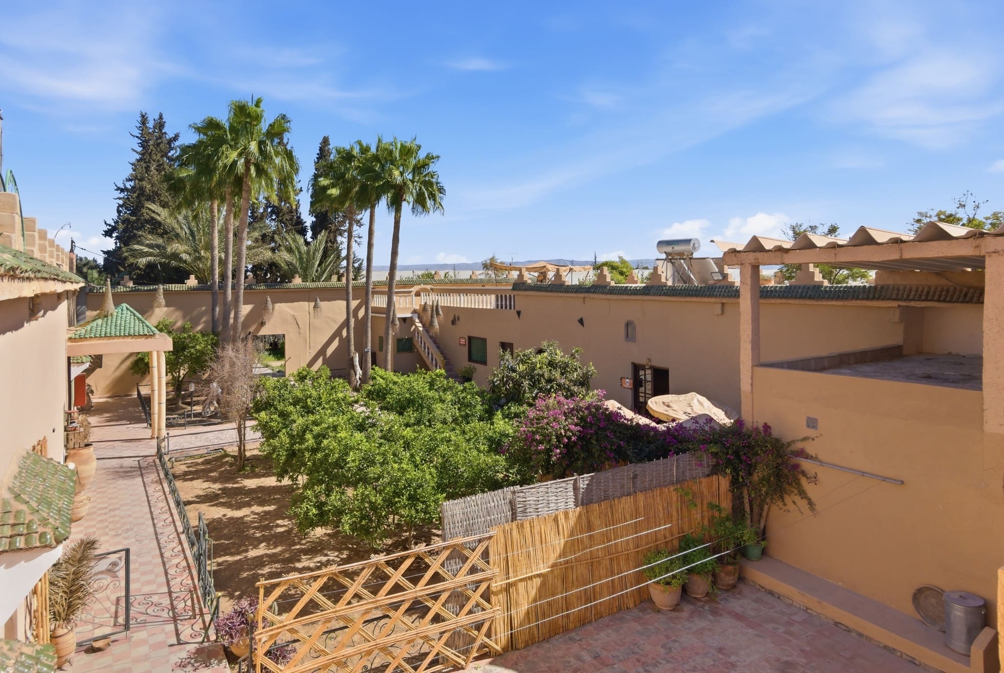 Le Riad, un joyau datant de 1930, préservé et maintenu avec soin pendant près d'un siècle. Plongez dans une véritable expérience temporelle grâce à ses patios d'origine, ses fondations ancestrales, son architecture traditionnelle et sa décoration artisanale marocaine. Profitez également du confort moderne offert par le Riad, avec la climatisation présente dans la plupart des pièces, des chauffe-eaux solaires écologiques, des finitions impeccables et des installations sanitaires flambant neuves et parfaitement fonctionnelles. Notre restaurant ainsi que nos chambres d'hôtes sont entièrement équipés, prêts à démarrer leur activité rapidement