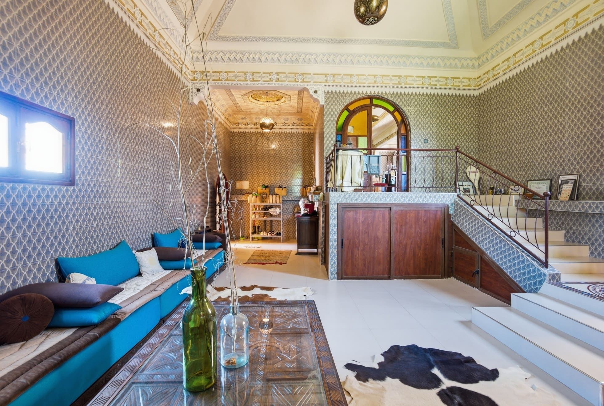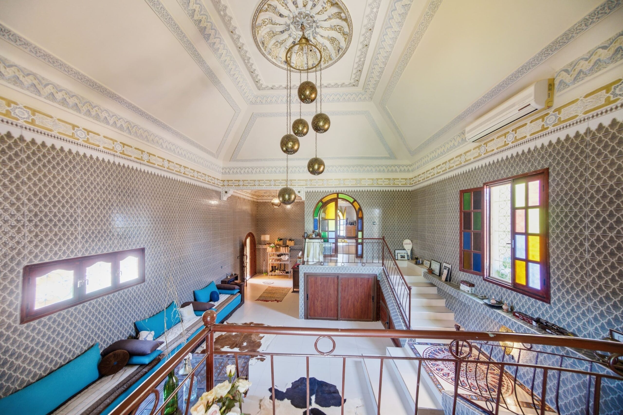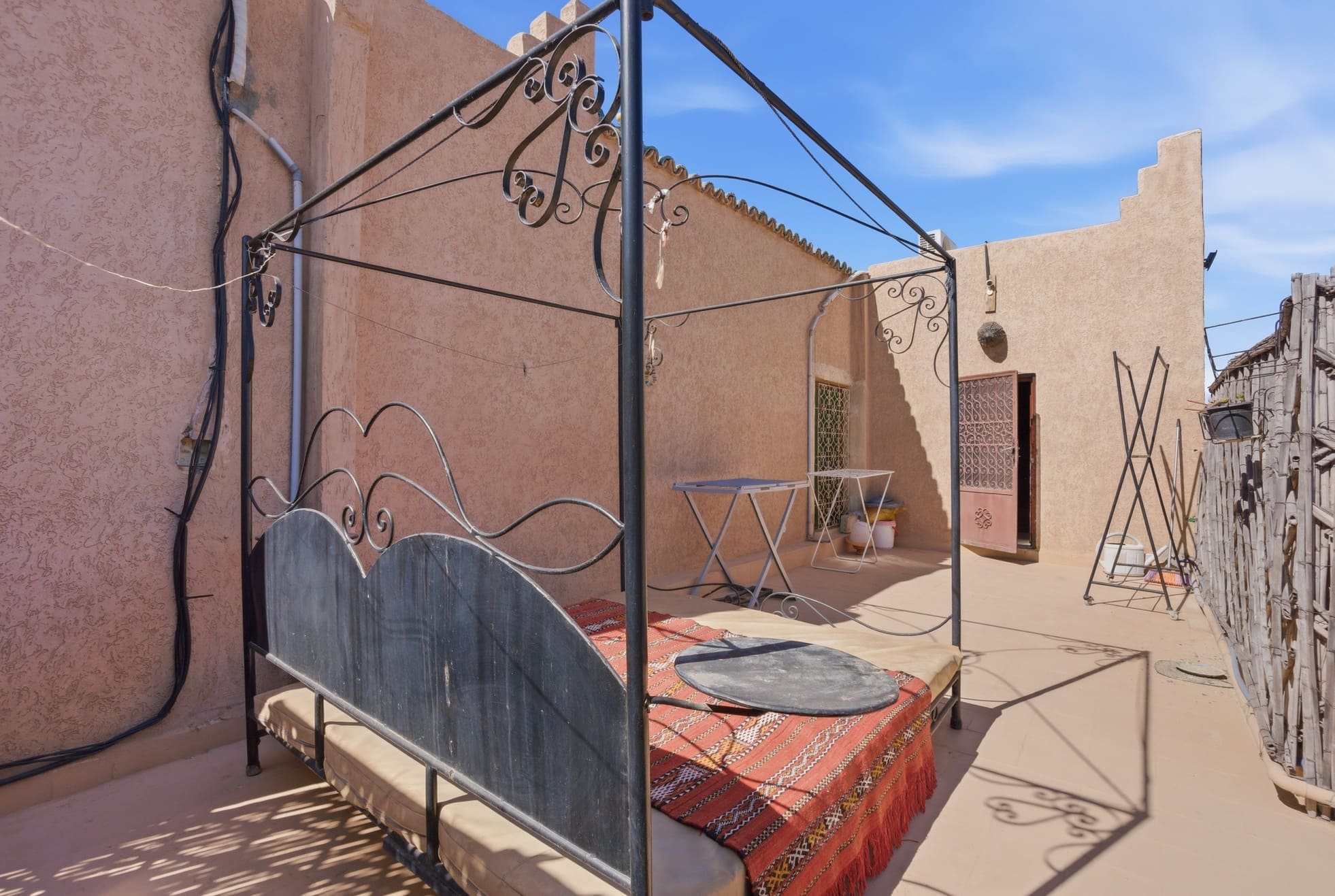 Le Riad, un joyau datant de 1930, préservé et maintenu avec soin pendant près d'un siècle. Plongez dans une véritable expérience temporelle grâce à ses patios d'origine, ses fondations ancestrales, son architecture traditionnelle et sa décoration artisanale marocaine. Profitez également du confort moderne offert par le Riad, avec la climatisation présente dans la plupart des pièces, des chauffe-eaux solaires écologiques, des finitions impeccables et des installations sanitaires flambant neuves et parfaitement fonctionnelles. Notre restaurant ainsi que nos chambres d'hôtes sont entièrement équipés, prêts à démarrer leur activité rapidement